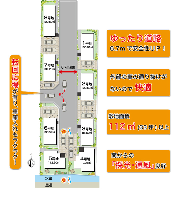 土地売買契約後3ヶ月以内に当社との住宅請負契約を締結していただくことを条件として販売します。 この期間内に住宅を建築しないことが確定したとき、 または住宅の建築請負契約が成立しなかった場合は、土地売買契約は白紙となり、 受領した金員は全額お返しします。 |