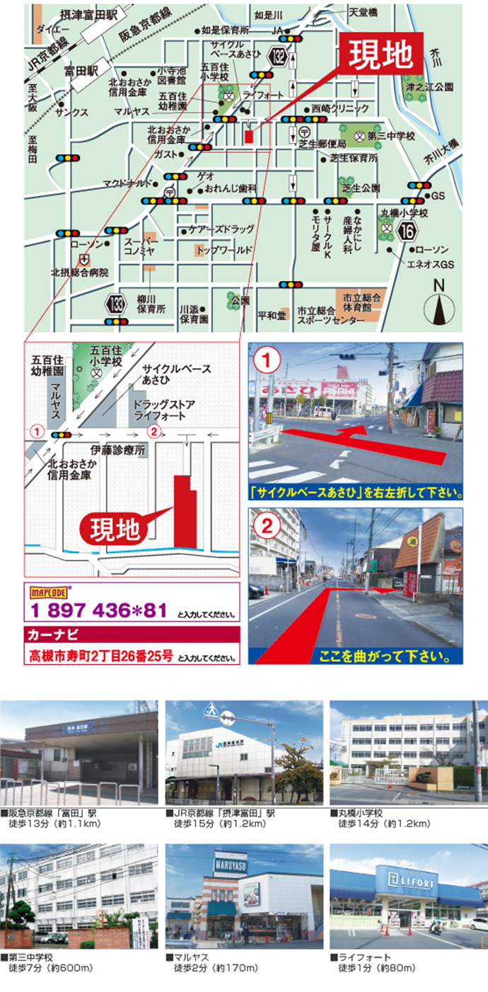 阪急京都線「富田」駅より徒歩13分、JR京都線「摂津富田」駅より徒歩15分 |