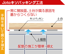 ●キソパッキンとキソパッキンの間は常に開放面となり、さらに木材の乾燥を促進します。